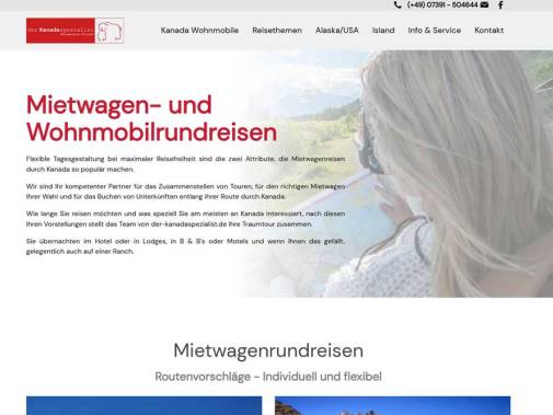 Der Kanadaspezialist organisiert individuell zusammengestellte Kanada-Reisen mit Wohnmobil, Mietwagen oder in Gruppen – basierend auf langjähriger Erfahrung und persönlicher Expertise.