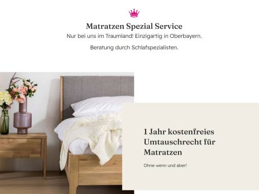 Seit über 30 Jahre betreiben wir den Traumland Matratzen-Fachmarkt in Weilheim. Spezielle Matratzen für diverse Rückenprobleme, sowie das altersgerechte Schlafen für Senioren, sind wesentliche Merkmale.